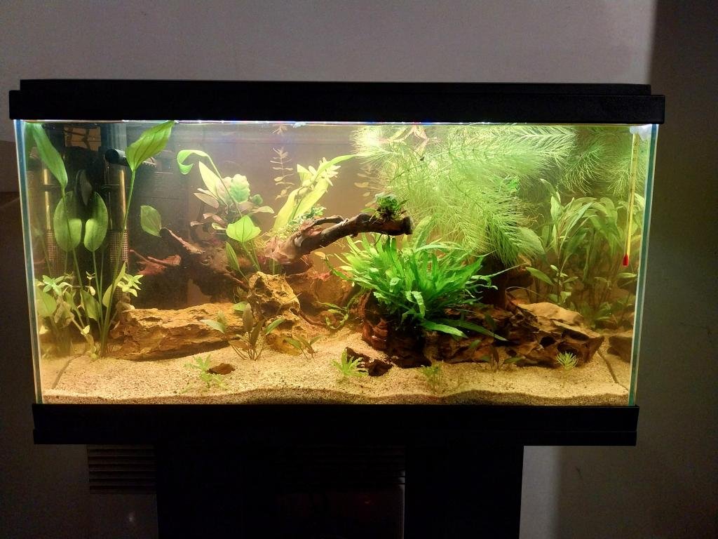 aquarium communautaire qui accueillera des Corydoras Pygmaeus, des Blue Velvet et des Escargots