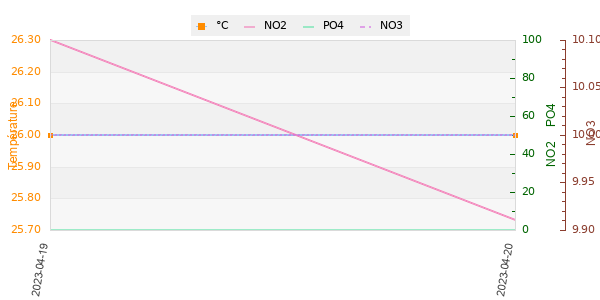 | Température | pH | Dureté_carbonatée(KH) | Dureté_totale(GH) | Nitrites(NO2) | Nitrates(NO3) |
