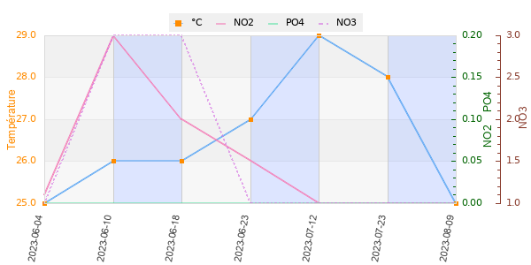 | Température | pH | Dureté_carbonatée(KH) | Nitrates(NO3) |