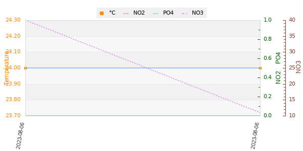 | Température | pH | Dureté_carbonatée(KH) | Dureté_totale(GH) | Nitrates(NO3) |