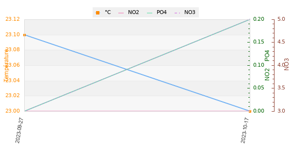 | Température | pH | Nitrates(NO3) | Fer(Fe) | Phosphates(PO4) |