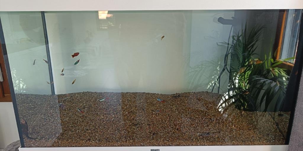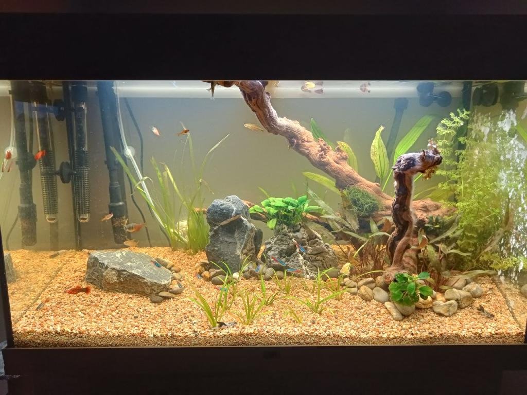 Ceci est un aquarium acheté en urgence alors que l'aquarium précédent avec une fuite ; il était nécessaire de réaliser en urgence un transfert de poissons.