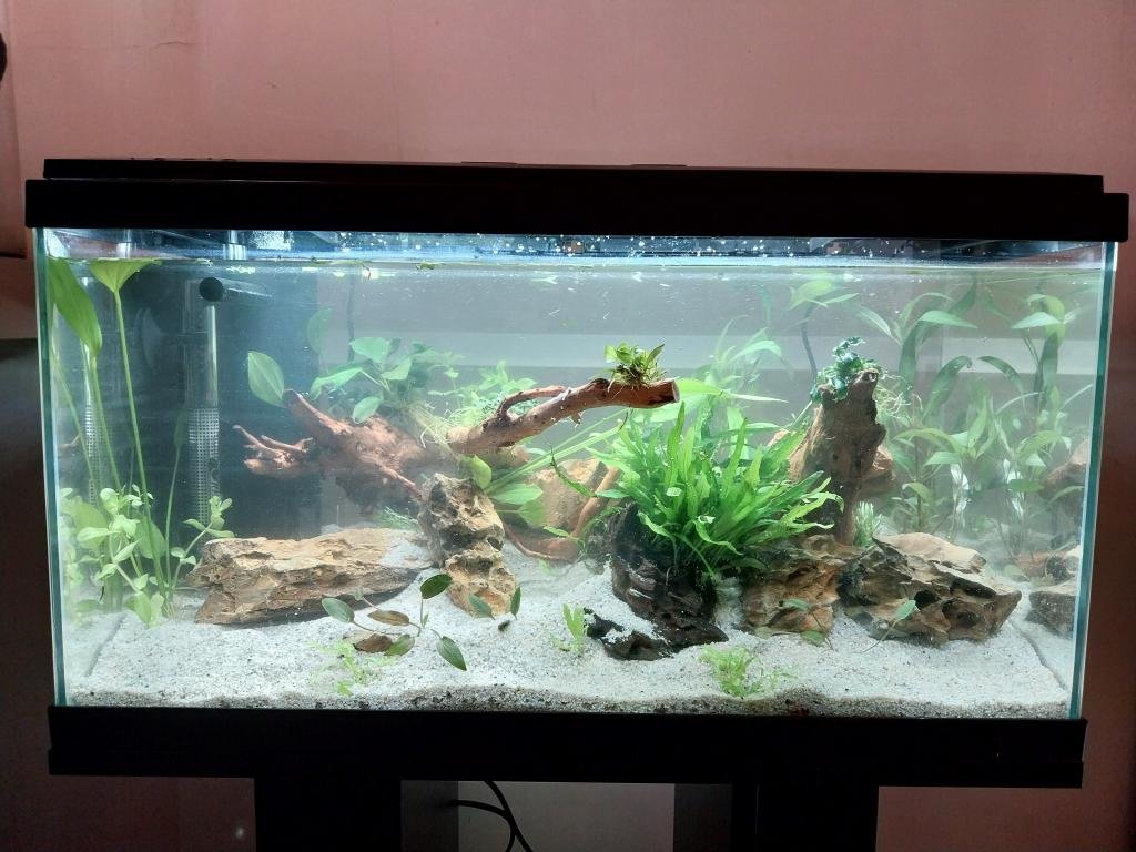 aquarium communautaire qui accueillera des Corydoras Pygmaeus, des Blue Velvet et des Escargots