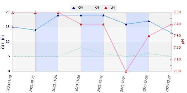 | pH | Dureté_carbonatée(KH) | Dureté_totale(GH) | CO2 |