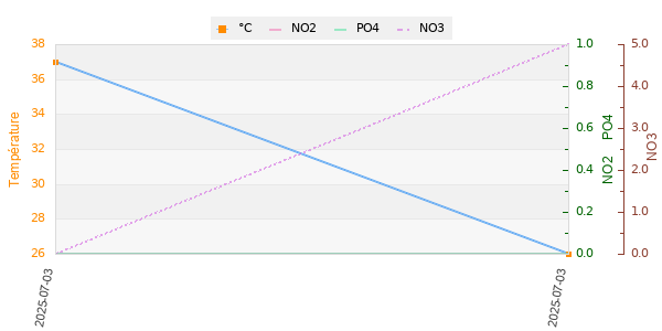 | Température | pH | Dureté_carbonatée(KH) | Dureté_totale(GH) | Nitrates(NO3) |